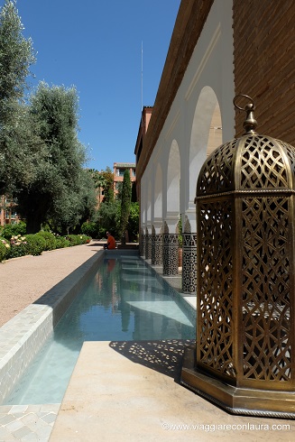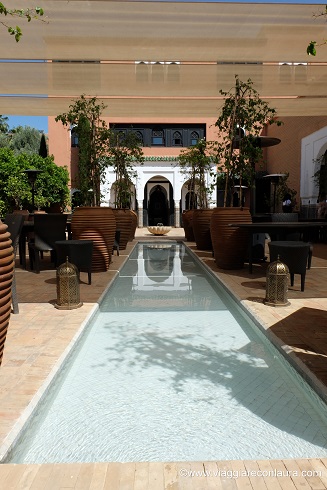 Tra i migliori riad a Marrakech, anche se non lo è del tutto, essendo un’insieme di riad (ben 53), è un luogo che pare uscito da una favola. Ho voluto visitarlo, almeno nelle parti comuni, per vedere i suoi marmi e la sua favolosa SPA.