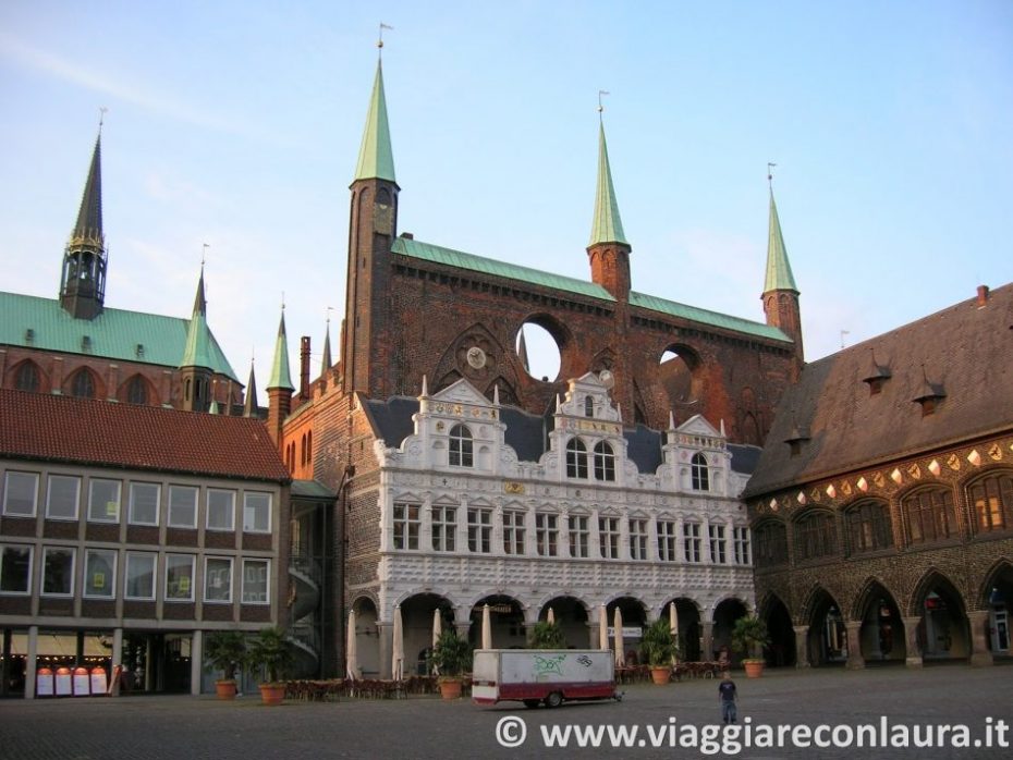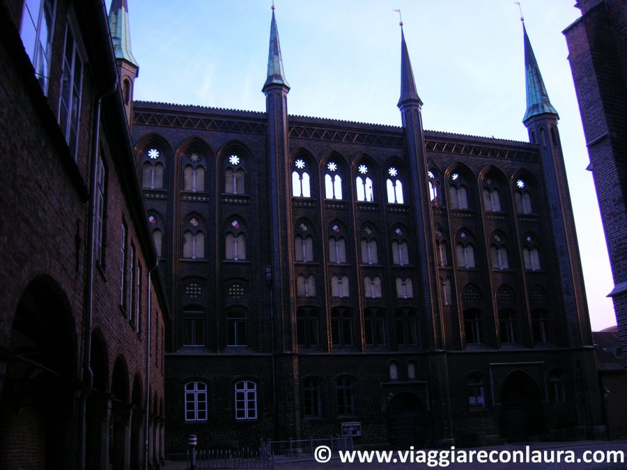 Il Municipio o Rathaus di Lubecca è in stile gotico, caratterizzato da mattoni rosso cupo ed alte guglie. Più che un municipio pare un castello!