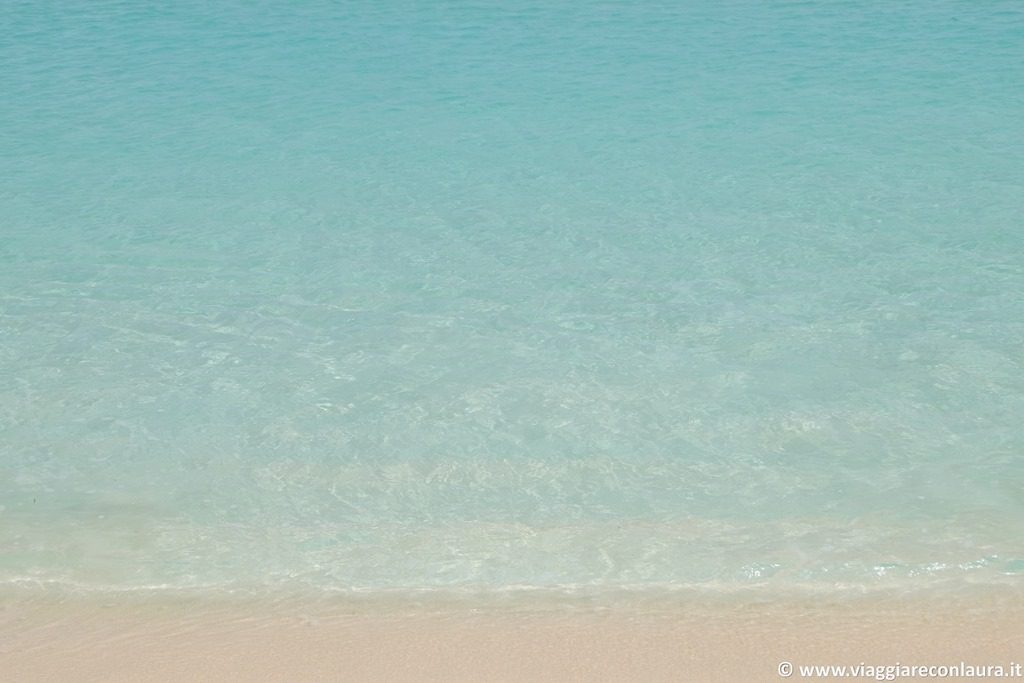 Il mare è di un colore spettacolare, un celeste acceso, davvero straordinario. Sulla spiaggia ci si può posizionare dove si vuole, tenendo conto che ombrelloni e lettini sono solo per gli ospiti del resort.