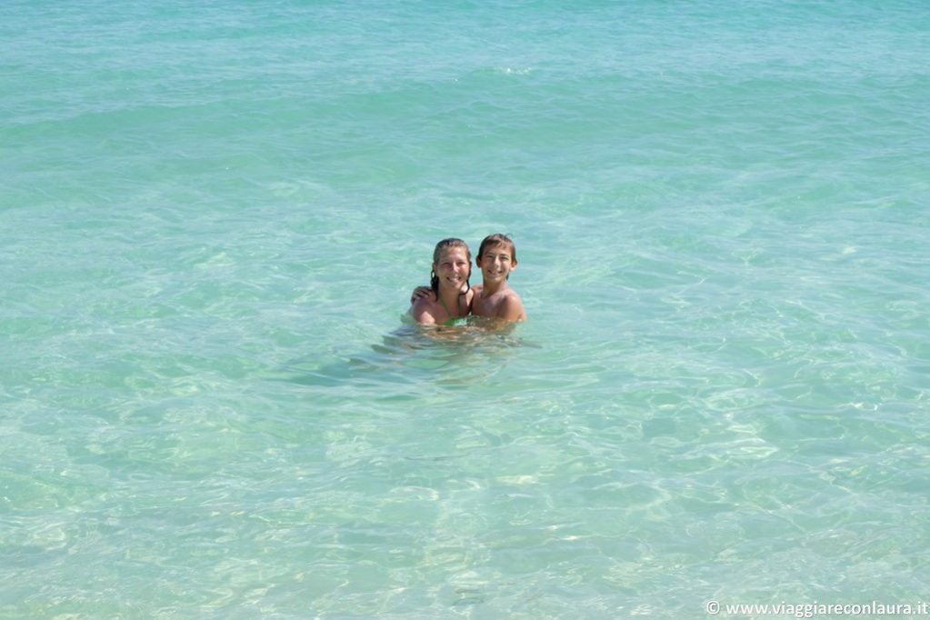 Sabbia fine come il borotalco e bianchissima, mare color verde-acqua. Il mare digrada abbastanza velocemente, ma la trovo comunque una spiaggia adatta alle esigenze di tutti. Neanche da dire che il mare ha temperature favolose…