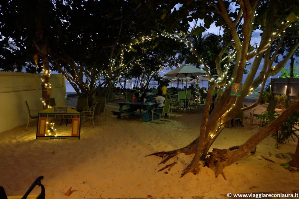 Si mangia sulla spiaggia, sotto gli alberi, in un’atmosfera rilassata, ed alla sera, si accendono le lucine attorno agli alberi, quasi come fosse Natale, mentre si ascolta il rumore del mare….si capisce che sia stato il mio posto preferito???