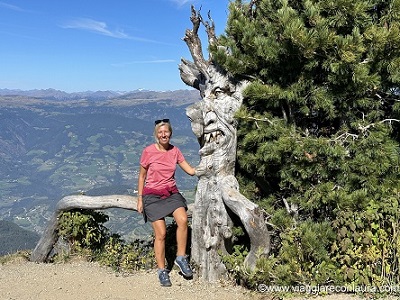 Troverete prima un bellissimo punto panoramico con un’enorme panca in legno intagliata ed una vista incredibile su Castelrotto e la valle sottostante poi, proseguendo seguendo le indicazioni, arriverete alla panca delle streghe.