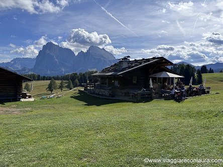 Prima di arrivarci però vi consiglio una sosta alla malga Messner Schweige, con bella vista su Sassopiatto e Sassolungo, ottimi piatti alto-atesini e prezzi onesti (i meno esosi di tutta l’Alpe secondo me).