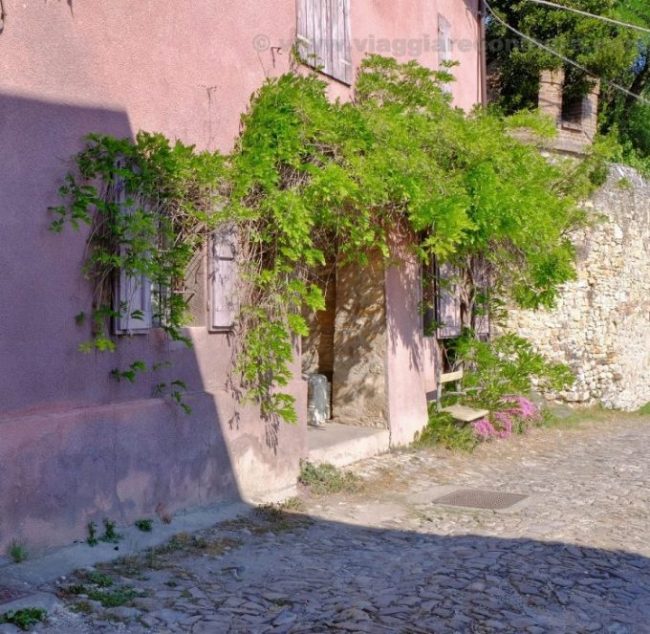 Un consiglio: andate in visita al castello a metà aprile o a maggio. La prima casa del borgo di Scipione, di color rosa pallido, si presenterà con un glicine meraviglioso, oppure con tanti fiorellini lilla perfettamente in tono con il colore della casa…io me ne sono innamorata!!