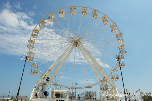 Arrivate fino alla Piazza Andrea Costa, dove è ubicato il Grand Hotel. Lì si trova la spiaggia libera, alle spalle di una bella ruota panoramica, davvero scenografica.