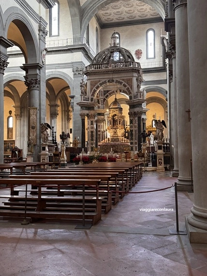 L’attuale basilica però è successiva ed è stata commissionata al Brunelleschi, che la cominciò nel 1444. Fu il suo ultimo lavoro che ahimè non vide terminare, in quanto morì 2 anni dopo.