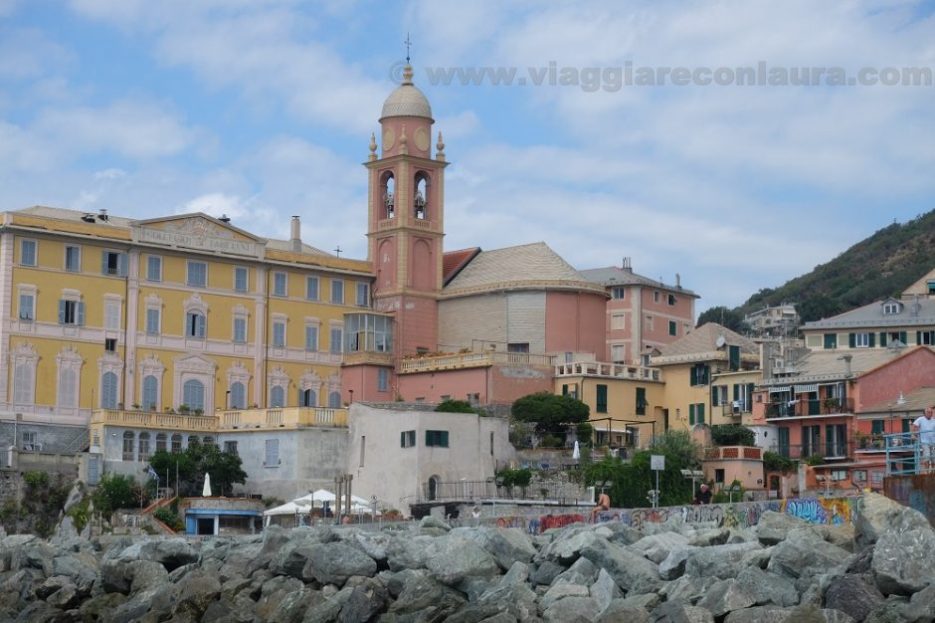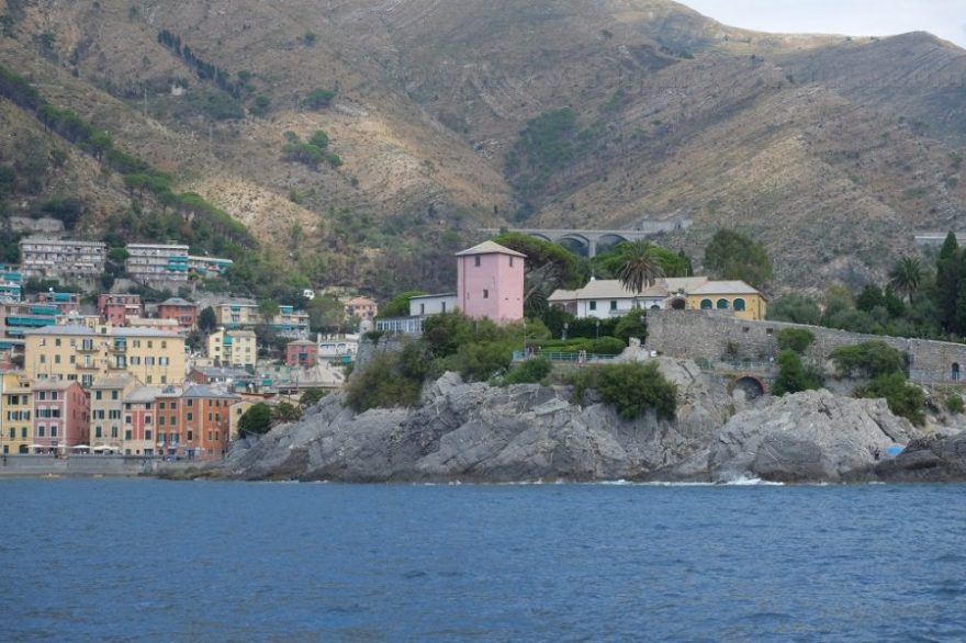 E’ molto piacevole, sia per la poca gente presente a bordo, sia perchè la Liguria vista dal mare è un vero spettacolo. Così abbiamo osservato Camogli allontanarsi, il piccolo paese di Recco, la graziosa Sori, seguendo contemporaneamente il treno che congiunge tutti questi piccoli paesi come puntini sulla carta.