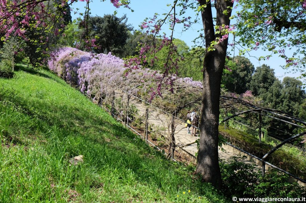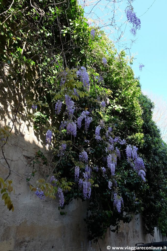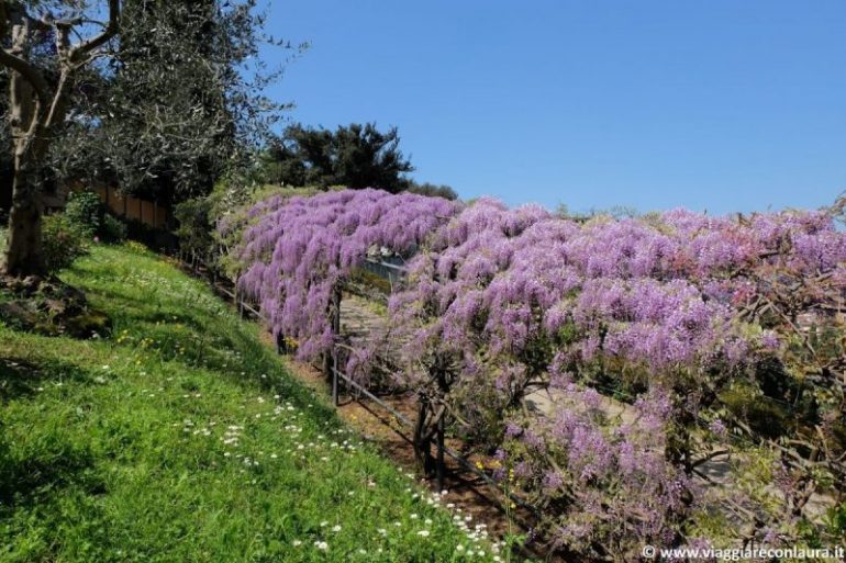 Il glicine fiorisce completamente intorno alla metà di aprile, ma la fioritura può anticipare o ritardare, a seconda della stagione. Meglio informarsi preventivamente se volete vederla al meglio.