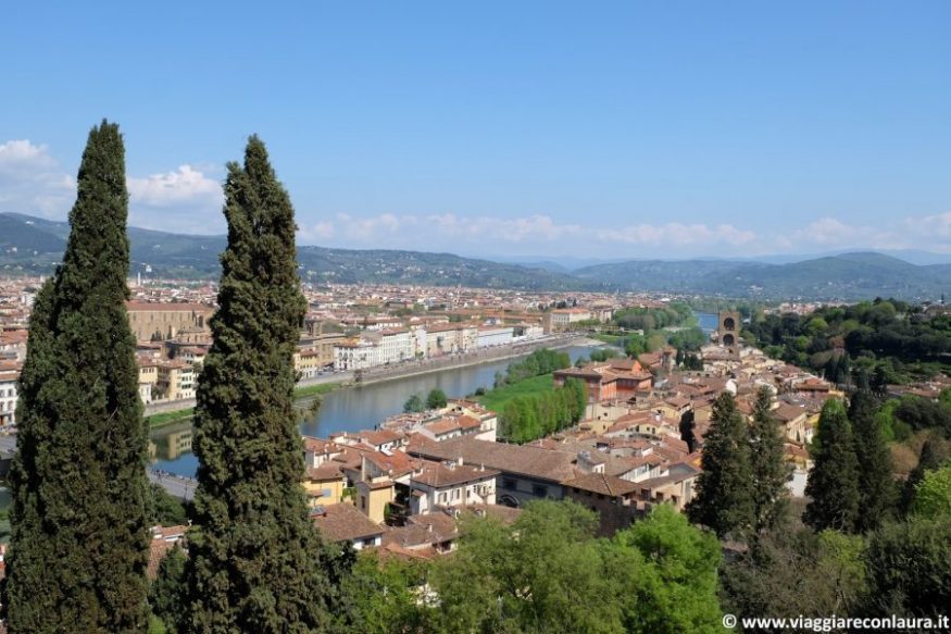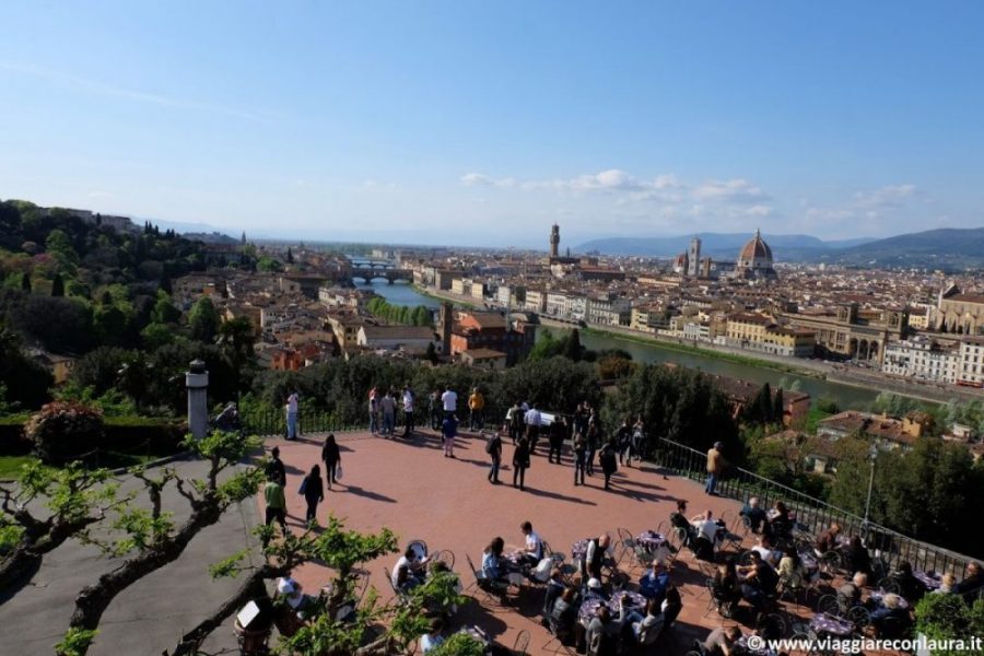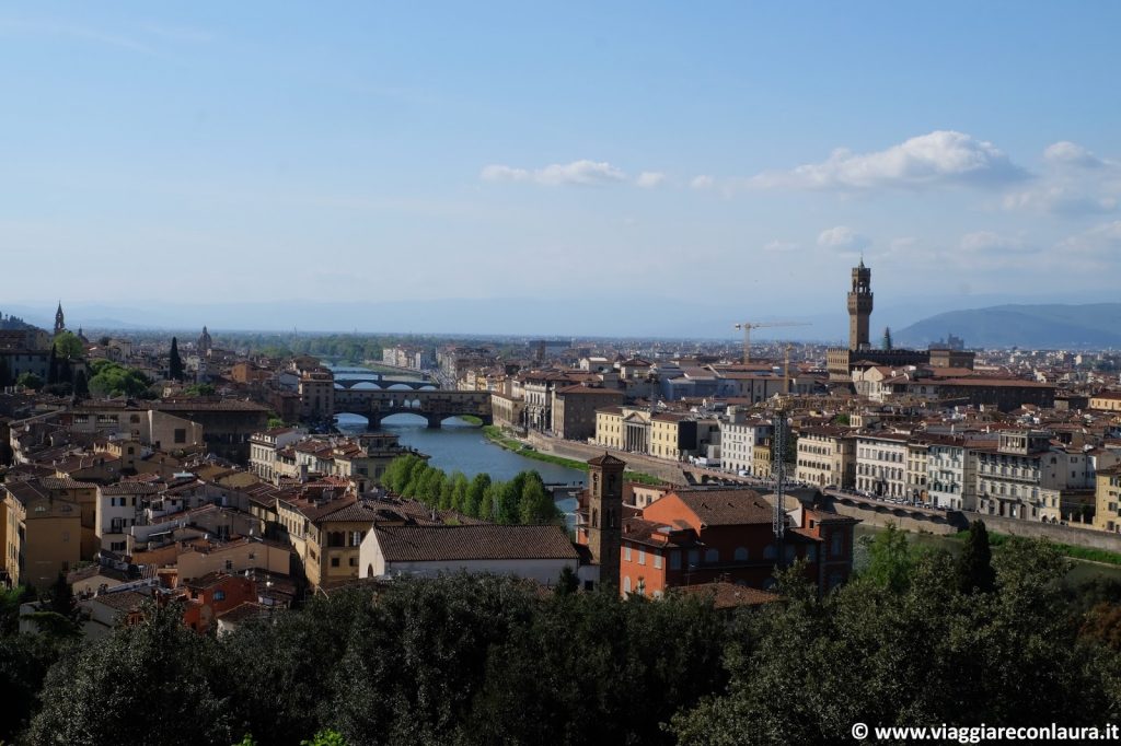 Visto che avevamo ancora un po’ di tempo a disposizione, ci siamo spostati verso il Forte Belvedere, dove avevamo parcheggiato (che come detto in precedenza è gratuito per il visitatore del complesso Bardini, fino ad esaurimento posti) e siamo saliti fino al famoso Piazzale Michelangelo dove la vista si perde non solo su Firenze, ma anche sul corso del fiume e sulle colline circostanti.