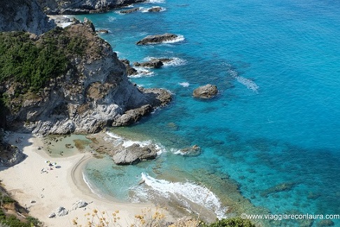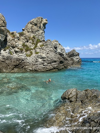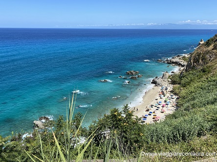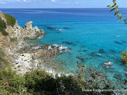 In rete ho visto che vi si arriva anche attraversando gli scogli all’altezza degli Appartamenti de Vita Tropea (in ottima posizione tra l’altro!)