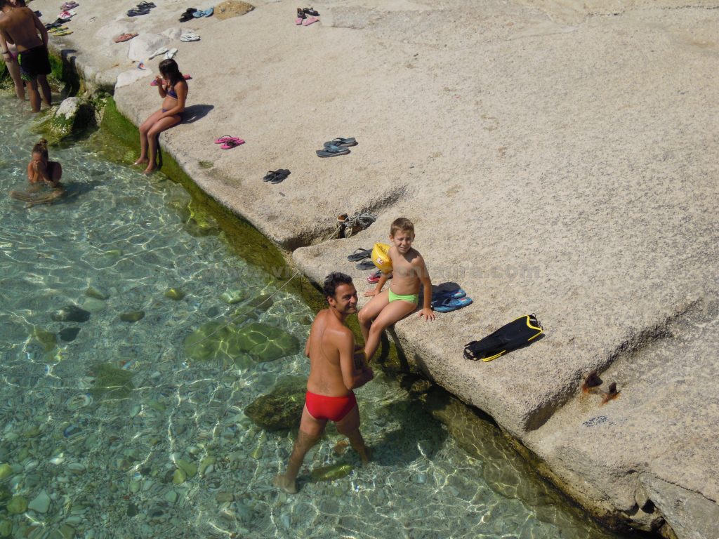 L’acqua diventa fonda quasi subito, ma è stupenda. Con pinne e maschera si può perlustrare tutta la zona, dove l’acqua è calmissima in quanto ben protetta dalle rocce.