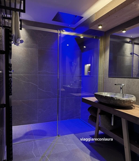 Posso capire che non piaccia a tutti, visto l’architettura moderna ma, con il suo basso impatto ambientale (in pratica si autoalimenta grazie all’energia geotermica), la posizione eccezionale, con vista sul massiccio del Latemar, e le sue grandi vetrate sulla valle, mi ha veramente conquistato.