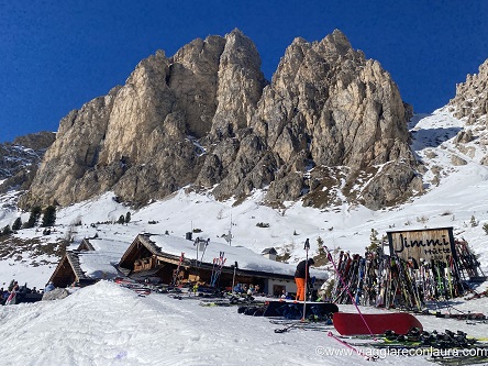 Premetto che noi lo abbiamo raggiunto in inverno da Colfosco, in Alta Badia, ma ci si può arrivare anche da Selva di Val Gardena, sempre con gli impianti, percorrendo in circa 20 minuti, un sentiero lievemente esposto che collega la malga Dantercepies (dove arriverete con gli impianti) al Jimmi.