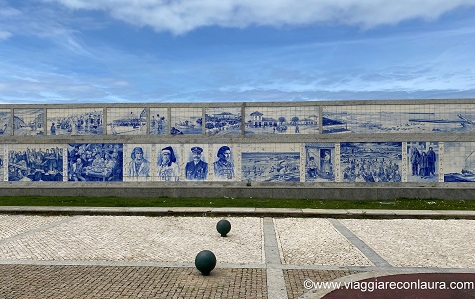 Aveiro è già interessante all’uscita dalla stazione, la quale nei muri esterni è decorata con i classici azulejos bianchi ed azzurri.