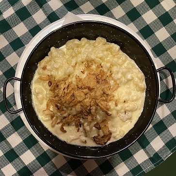I prezzi migliori li abbiamo trovati in questa heuriger, che reputo un’ottima soluzione dove mangiare bene a Vienna. Io ho preso degli ottimi gnocchetti bianchi con formaggio fuso e cipolla croccante, mentre mio marito ha preso un piatto tipico di cui non ricordo il nome, ma buono e fin troppo abbondante.