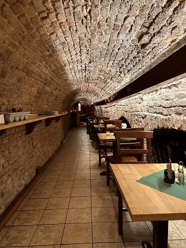 Quando ho guardato il menù, ho scoperto che questa è una vera e propria birreria/distilleria storica, nata dove un tempo sorgevano i vigneti dell’Imperatrice Amalia Guglielmina che, successivamente al 1717, qui fece costruire un monastero.
