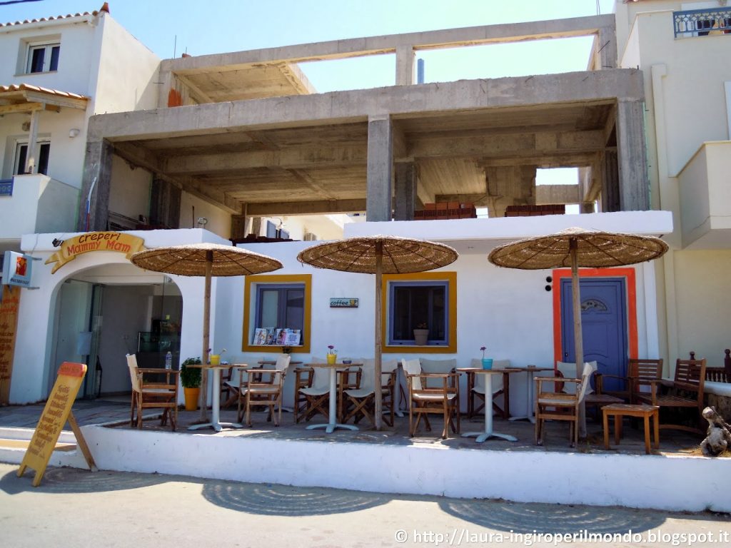 Noi, su suggerimento di chi vi era già stato, abbiamo optato per ristoranti come quello a Simos oppure un altro ristorante economico che troverete all’inizio del paese (venendo da Simos) e che fa ottimi spiedini di carne ad altrettanto ottimi prezzi…magari è solo un po’ spartano…ma almeno sanno fare il loro mestiere!