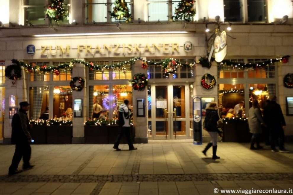 Se preferite recarvi al ristorante, le birrerie del centro storico sono spesso piene e vi consiglio di prenotare (dove è possibile farlo). Noi abbiamo cenato alla Hofbräuhaus, di cui ho parlato in precedenza, alla birreria Aynger alla Zum Franziskaner.