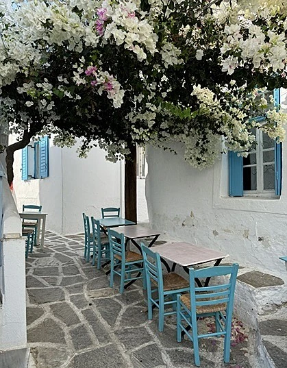 Questi sono i miei posti preferiti! All’interno della chora, in una viuzza stretta e difilata, si trova questa taverna, ancora più greca che la precedente.